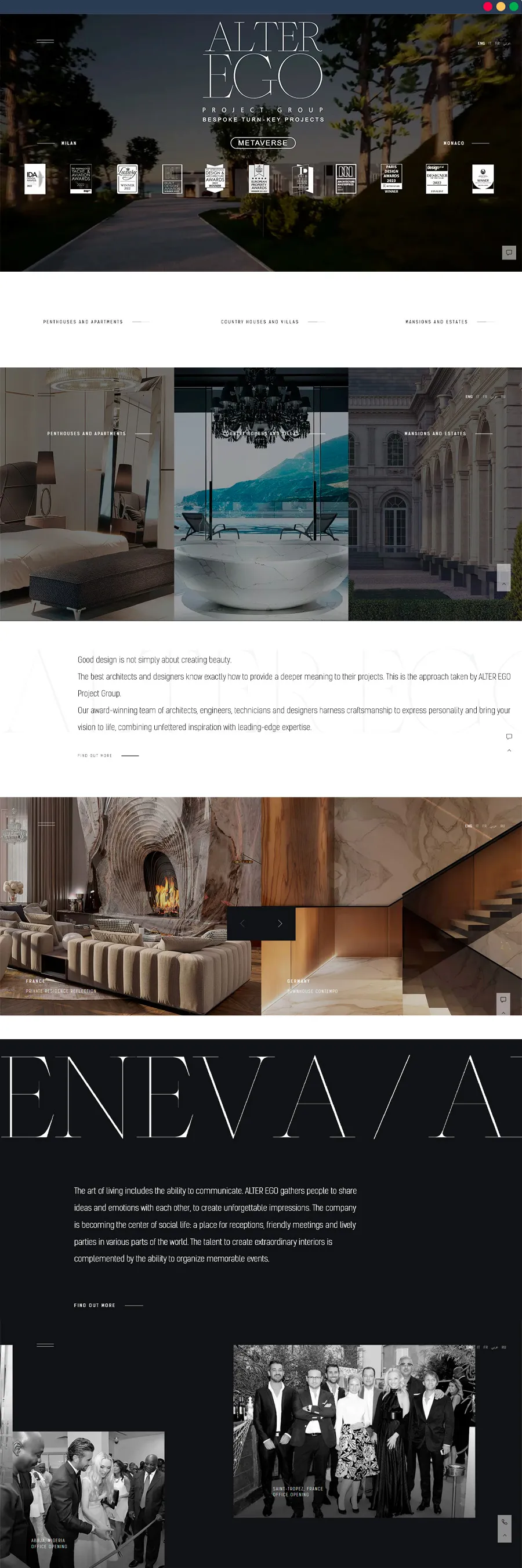 Alter Ego Project Group — архитектурное бюро премиум класса, семейный бизнес, основанный в 2003 году. Генеральные офисы компании расположены в Милане и Москве. На протяжении всего этого времени основной состав Alter Ego не менялся, благодаря чему в настоящий момент это сплоченная команда единомышленников, способная максимально близко понять и воплотить пожелания заказчика