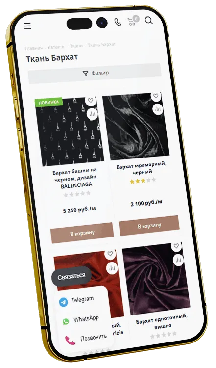 Цель: создать интернет магазин тканей и фурнитуры со стильным дизайном, понятным интерфейсом и удобной навигацией. Сделать его конкурентоспособным для бизнеса, качественным для поисковых систем и интересным для покупателей. Реализовать возможность загрузки товаров и предложений из 1С.