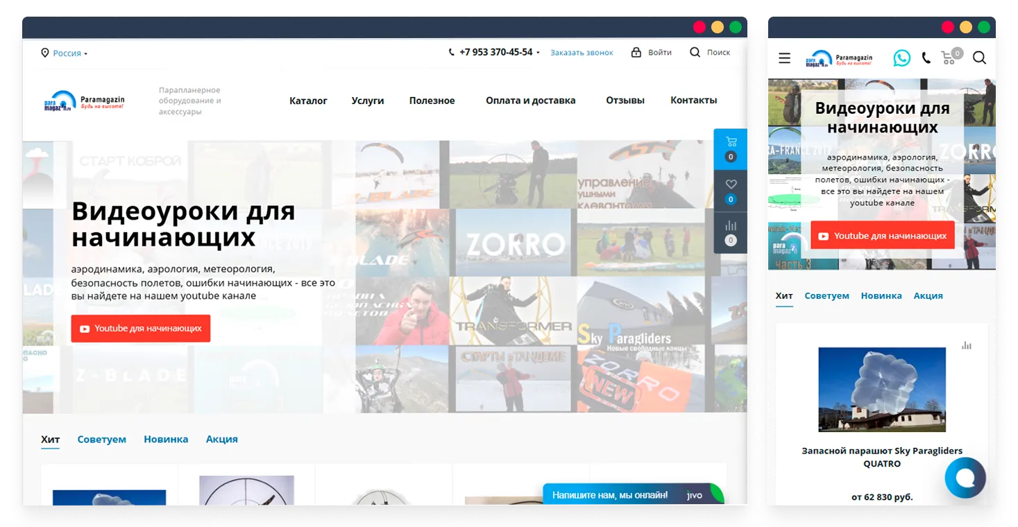 Paramagazin - спортивный интернет-магазин по продаже парапланов, парамоторов и парапланерного оборудования, аксессуаров и одежды для парапланеристов.