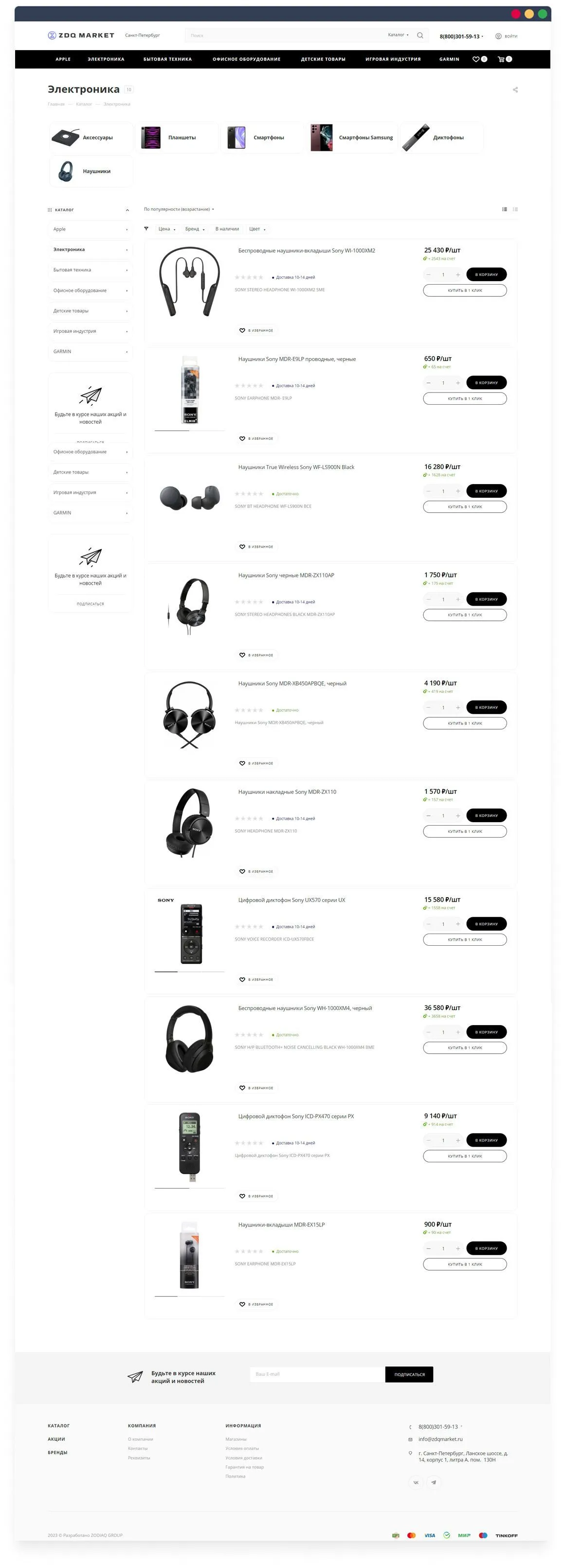 Настроили синхронизацию с 1С и выгрузили товары на сайт.